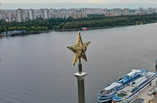 Ведь отсюда отлично видно обновленное здание Северного речного вокзала, который, напоминает двухпалубный пароход со шпилем-мачтой и балконами-бортами.Кстати, немногие знают, что 24-метровый шпиль, увенчанный звездой, оборудован механизмом, позволяющим опускать всю конструкцию во внутреннее пространство башни. Этим устройством столичные инженеры воспользовались в 1941-м году для того, чтобы лишить фашистских летчиков удобного ориентира. Звезда, изготовленная из стали и красной меди, была слишком крупной и заметной мишенью.